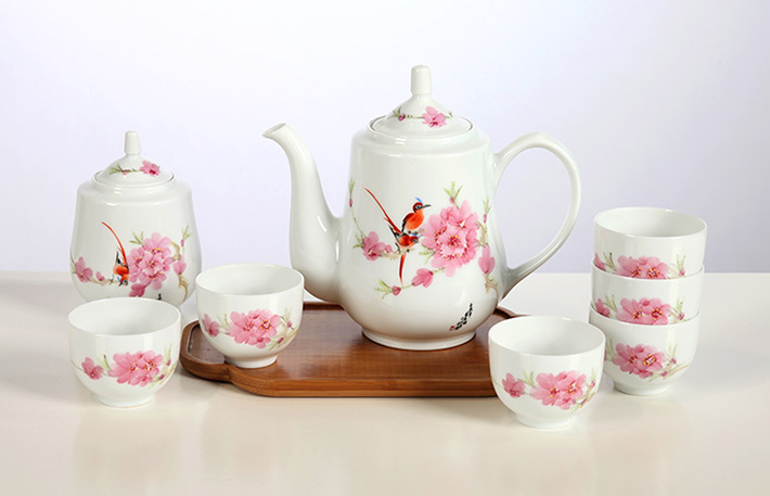 8頭手繪茶具(水點(diǎn)桃花)