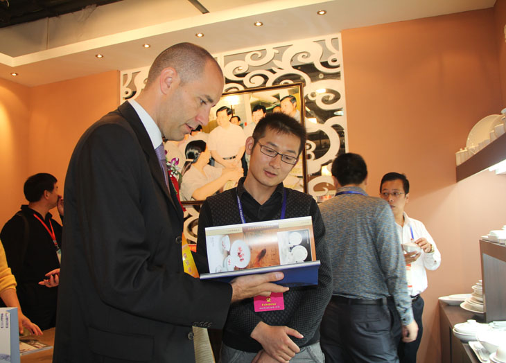 一位瓷博會邀請的外國貴賓在參觀完我們的展館后,對我公司的產(chǎn)品非常感興趣,表示有意向合作,領(lǐng)取了公司的產(chǎn)品畫冊