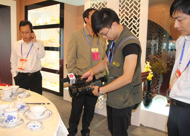 全國人大常委會副委員長韓啟德在我公司展館參觀,對我公司在全國青花玲瓏及青花日用陶瓷器形與裝飾設(shè)計大賽金獎作品《憶漢》非常感興趣